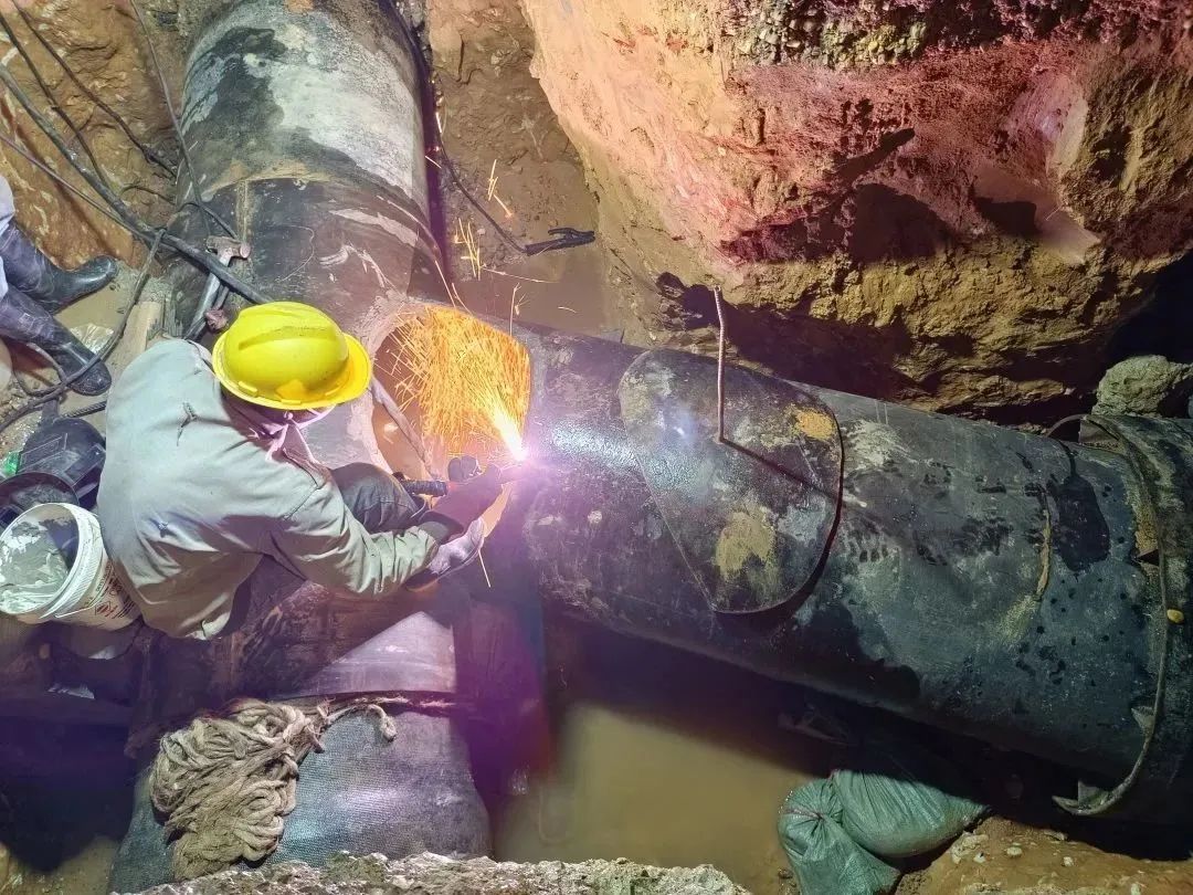 圖為水建公司負(fù)責(zé)建設(shè)的大學(xué)路過(guò)可利江段DN1000給水管連通工程施工現(xiàn)場(chǎng)