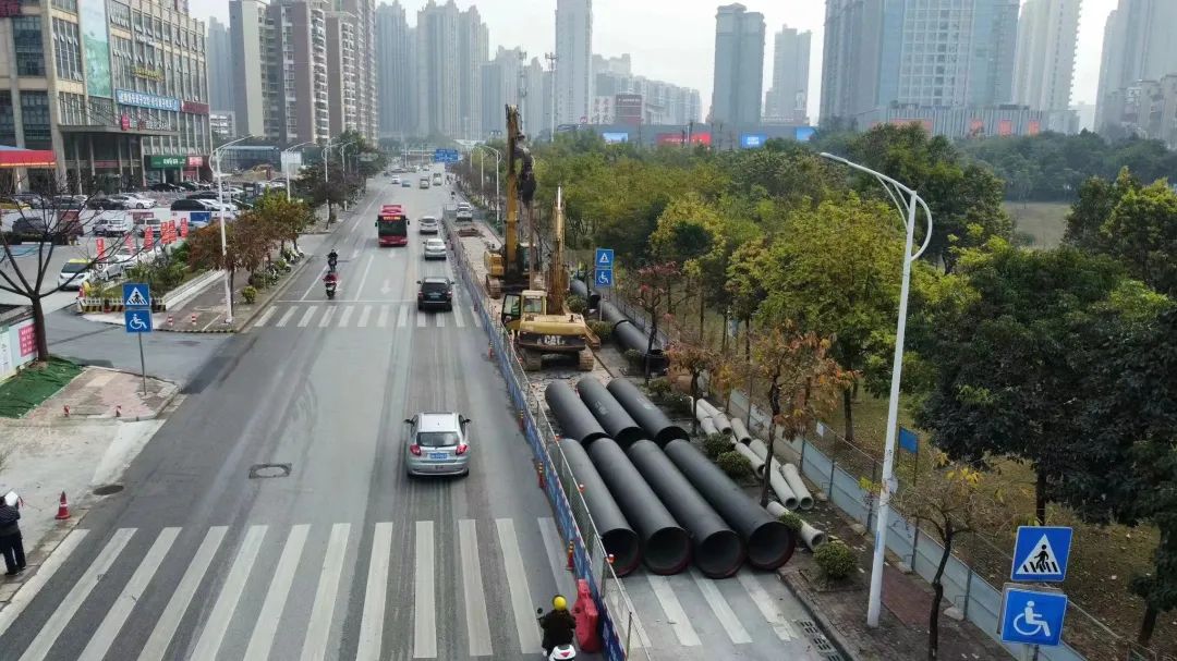 圖為水建公司負(fù)責(zé)建設(shè)的云景路(埌東加壓站—高坡嶺路)DN1000球墨鑄鐵給水管道工程施工現(xiàn)場(chǎng)