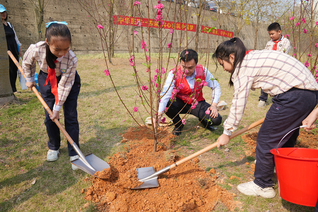 志愿者和學生們共植民族團結生態林