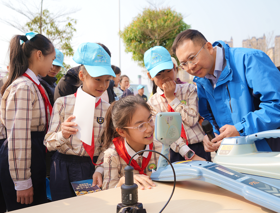 設置在廣場上的“水科技設備展”專區,從專業的管道檢測儀,到神秘的節水水表,再到功能強大的小型排水車,各具特色的專業設備吸引了大家駐足觀看、拍照,不少學生更是拿起設備,來了一輪沉浸式的體驗。