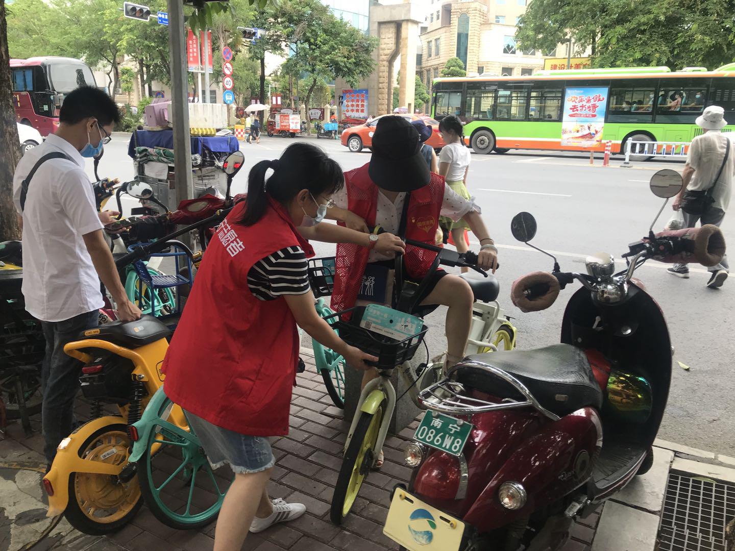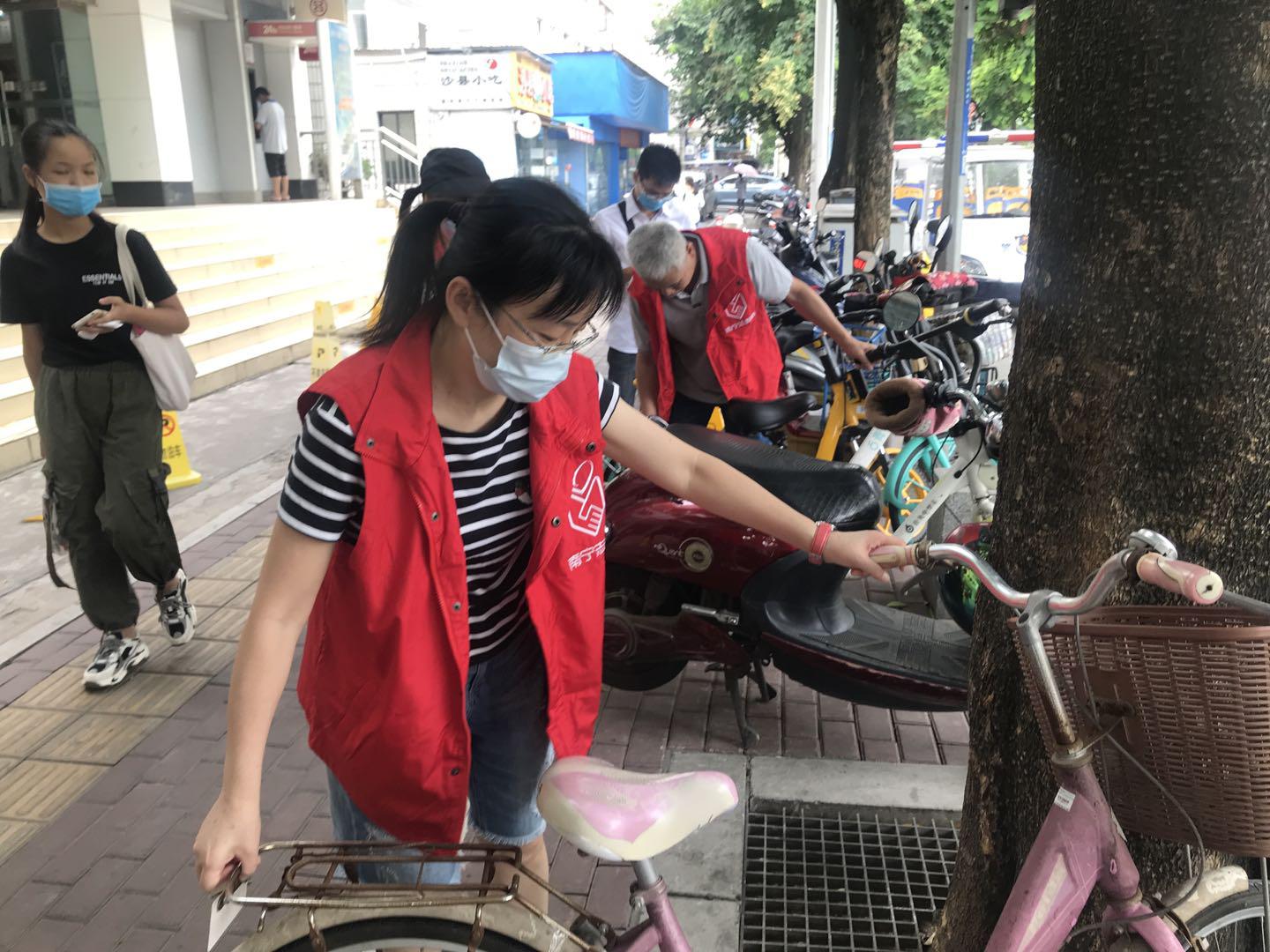 共享單車為居民提供了便利,唱響了綠色出行的理念,然而亂停亂放、隨意毀壞等現(xiàn)象接踵而來,成了靚麗風(fēng)景線上一抹不文明的色彩。青秀區(qū)津頭路口周邊都是老舊小區(qū),道路狹窄,交通擁擠,共享單車隨便擺放的問題比較嚴重。凌鐵水廠的志愿者們充分發(fā)揚了不怕臟、不怕累、不怕苦的工作作風(fēng),在青秀區(qū)街頭開展“”共享單車隨手扶志愿活動”,對主干道出現(xiàn)共享單車扎堆、占道、歪倒的情況,他們會將車扶好,排放整齊,而對于一些零散停放的車,他們便集中搬到一個地方排好。